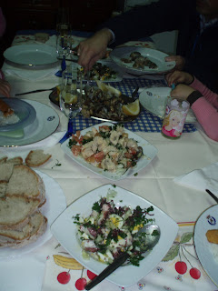 Foi um fim de semana muito bem passado, apesar de muito cansativo. Começou logo na sexta-feira, com um casal amigo a vir passar o dia cá em casa. Eles também duas crianças (um casal) e foi uma brincadeira pegada, com muita alegria e diversão. Cumprimos a tradição de não se comer carne nesse dia, por isso o almoço foi peixe assado (carapaus e sardinhas) e á noite houve ostras, ameijoas á bolhão pato, saladas de ovas e de polvo e mexilhões. Como vêem o sacrificio foi grande lol!